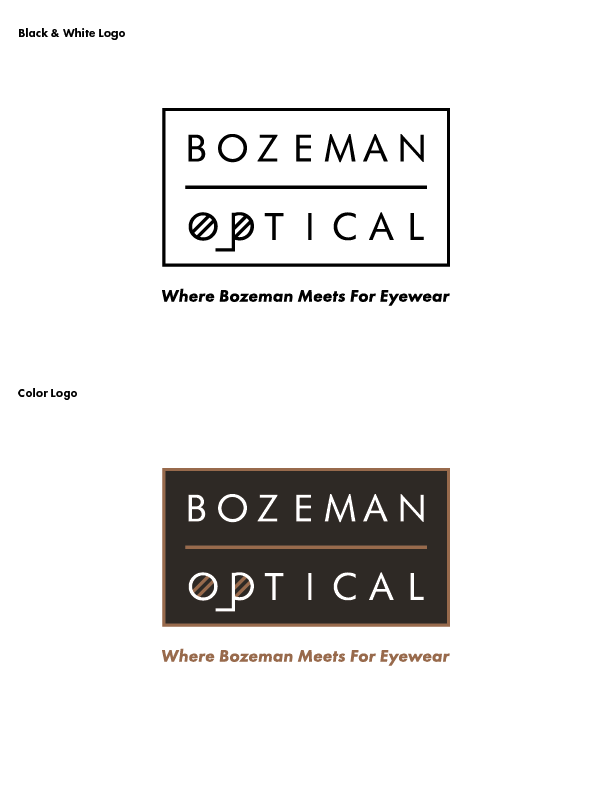 Bozeman Optical has a gorgeous Avant-garde store front. The front signage shows the original logo, that was redesigned for the website and in-store print materials.