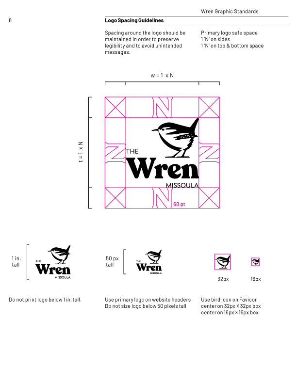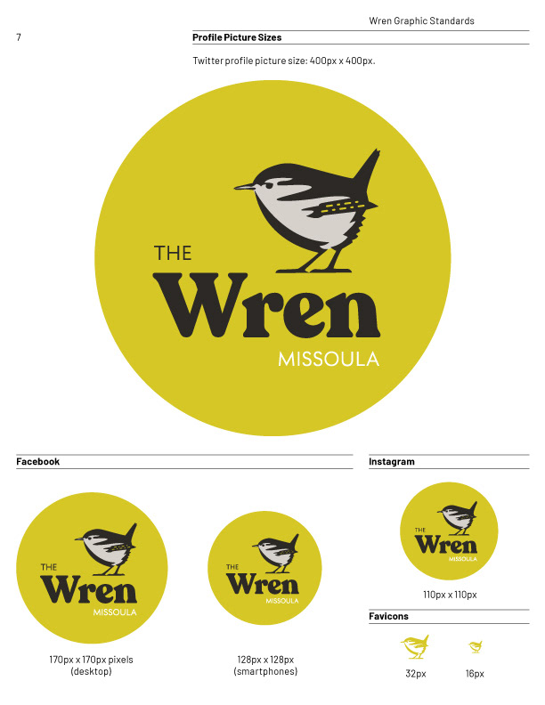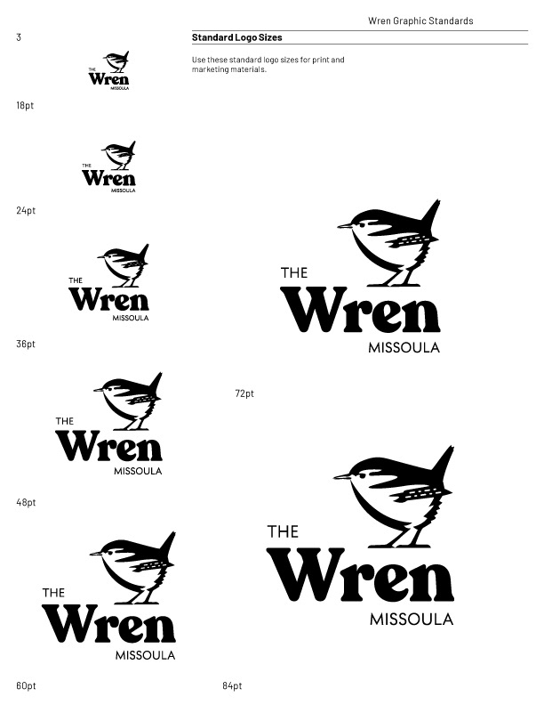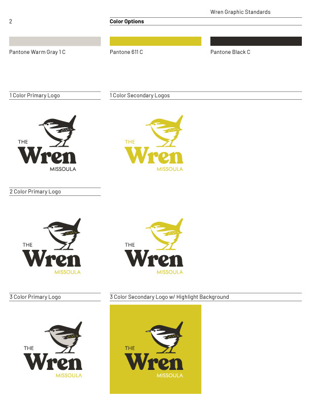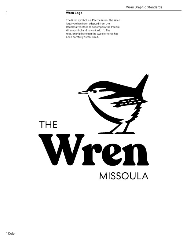 Logo and Brand Style Guide for The Wren Hotel in Missoula, Montana.